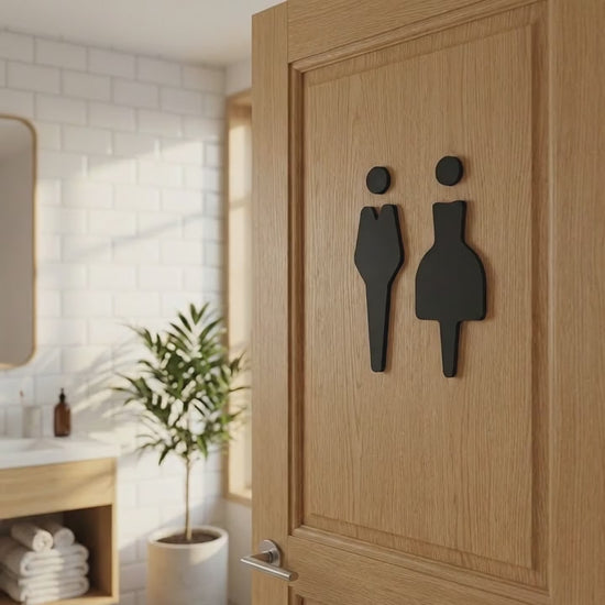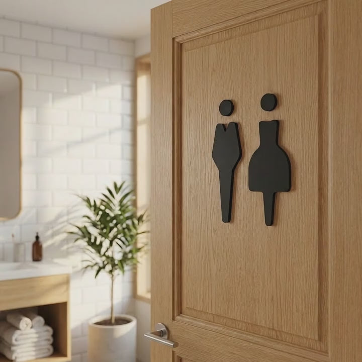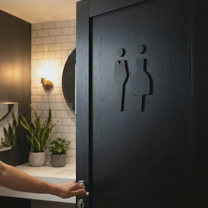 Transform your restroom with bold, sophisticated signage that combines functionality with contemporary design.